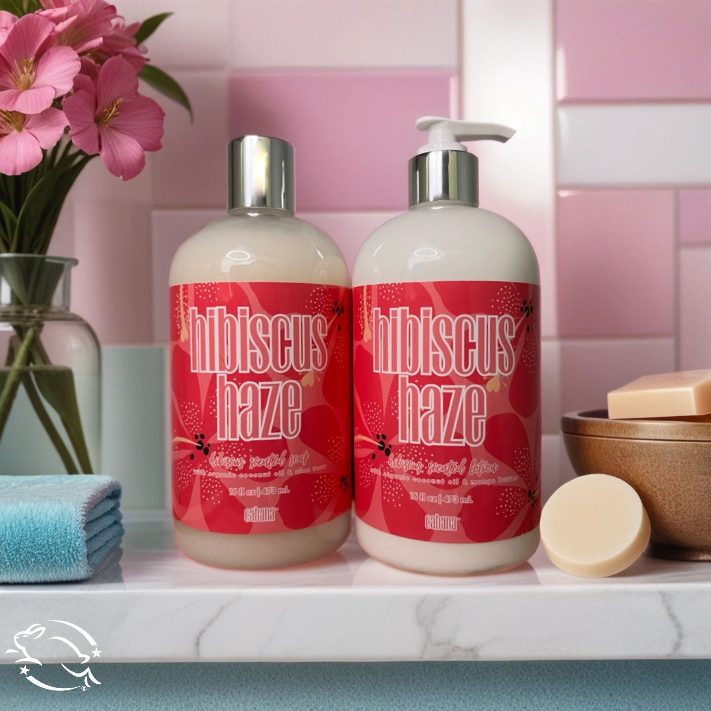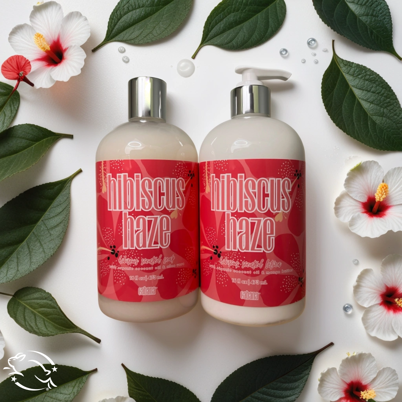 made with natural & organic ingredients in our signature Hibiscus Haze scent
